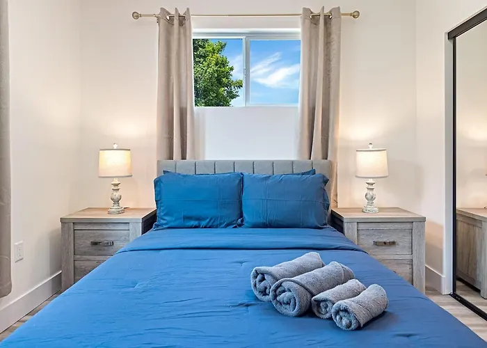 Pantages Theatre ist in ungefähr 3 km Entfernung von dieser Villa in Los Angeles, während der Hollywood-Schriftzug ist ungefähr 7 km von der Unterkunft entfernt. Diese Villa ist in einer Entfernung von etwa 15 Fahrminuten von den religiösen Stätten wie der Kathedrale Unserer Lieben Frau von den Engeln. Eingebettet in ungefähr 4 km Entfernung von der Academy of Magical Arts liegt die Villa Sunset Chateau Hollywood zudem in einer 6 km Entfernung von kulturellen Sehenswürdigkeiten wie den La Brea Teergruben.